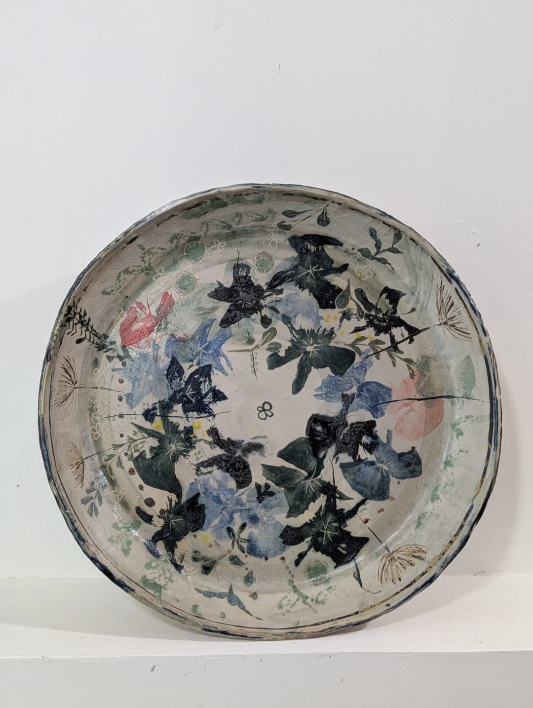 Je pétris la terre, je la martèle, je la marque de mes doigts, je travaille la trace. J’aime que le procédé soit visible. Pour chaque pièce je prends le temps qu’il faut, je suis les étapes de séchage avec attention, je cherche des textures variées et j’y teste des émaux, fruits de mes recherches, ou généreusement offertes ! Je tente de faire confiance, d’accepter avec curiosité les accidents, souvent ils me conduisent ailleurs. Je travaille des plats plus grands, je les pense avec des fruits colorés, j’imagine de grandes tablées à la campagne, je rêve d’un quotidien simple et chic, la grâce du travail fait avec temps et amour.